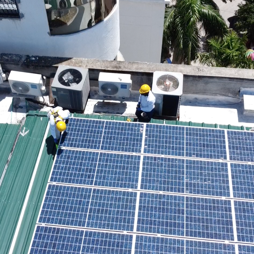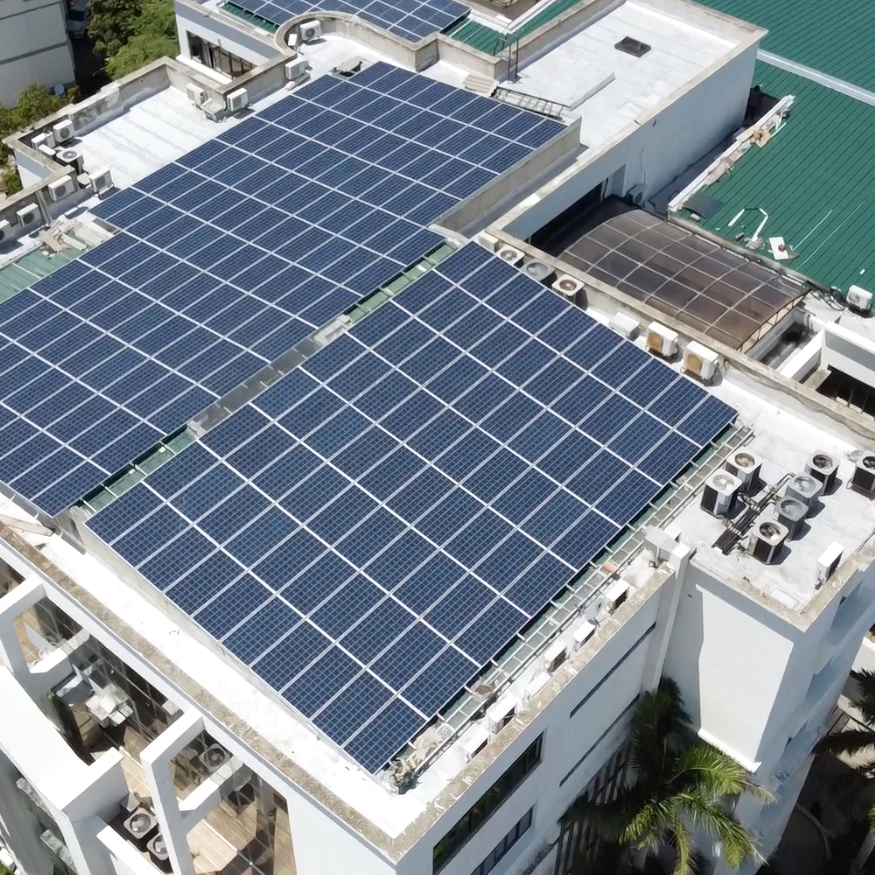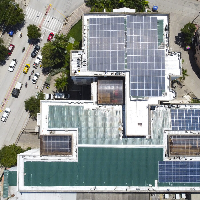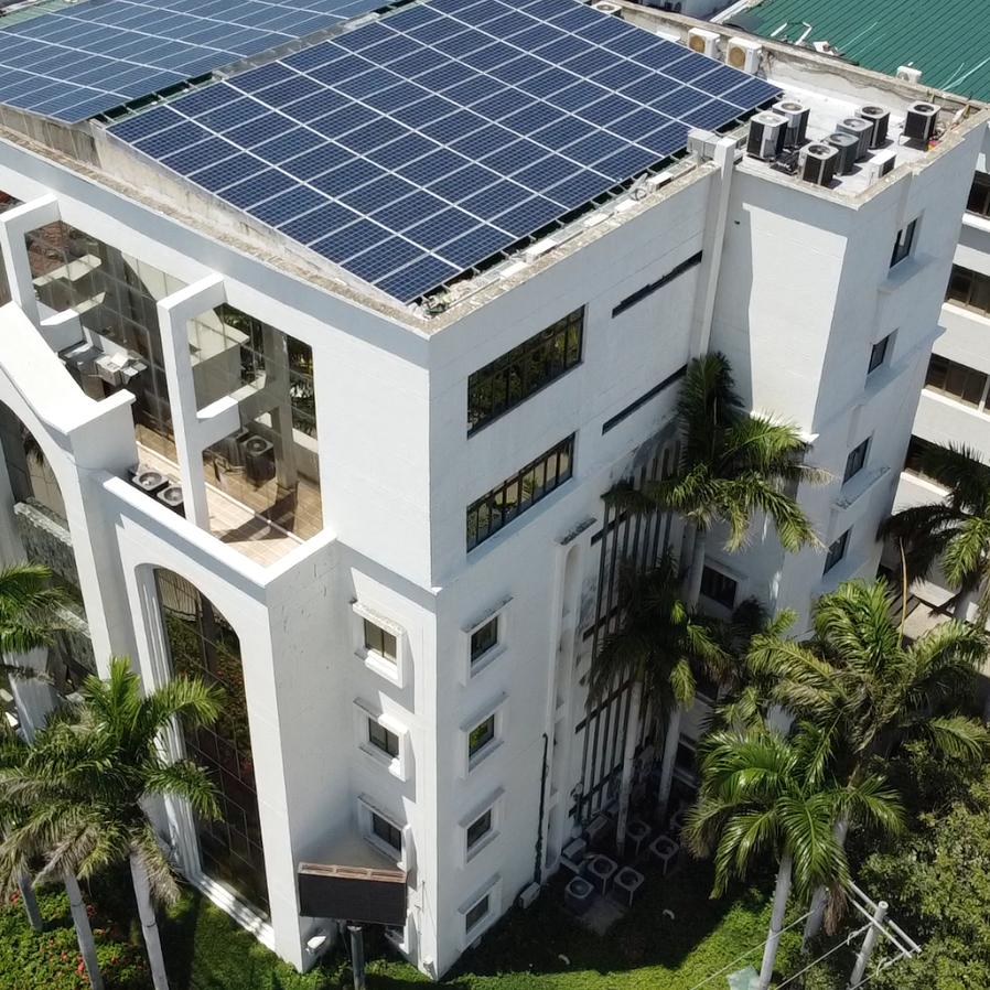 Está conformado por 86 Paneles solares de la marca Canadian Solar INC, son paneles solares que cuentan con certificaciones Retie y TUV. El sistema de transformación esta constituido por un inversor de interconexión a red de 30KW trifásico 220VAC, el sistema tiene una capacidad de generación de energía de aproximadamente 4Mwh/Mes y posee una plataforma de monitoreo en tiempo real de última tecnología. Con la implementación de este sistema se reducen las emisiones de emisiones de Co2 en 16 Toneladas anuales.