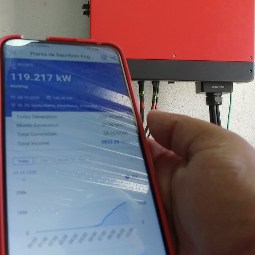 Está conformado por 290 Paneles solares de la marca Canadian Solar INC, son paneles solares que cuentan con certificaciones Retie y TUV. El sistema de transformación esta constituido por 2 inversores de interconexión a red de 60KW trifásico 480 VAC, el sistema tiene una capacidad de generación de energía de aproximadamente 16Mwh/Mes y posee una plataforma de monitoreo en tiempo real de última tecnología. Con la implementación de este sistema se reducen las emisiones de emisiones de Co2 en 50 Toneladas anuales.